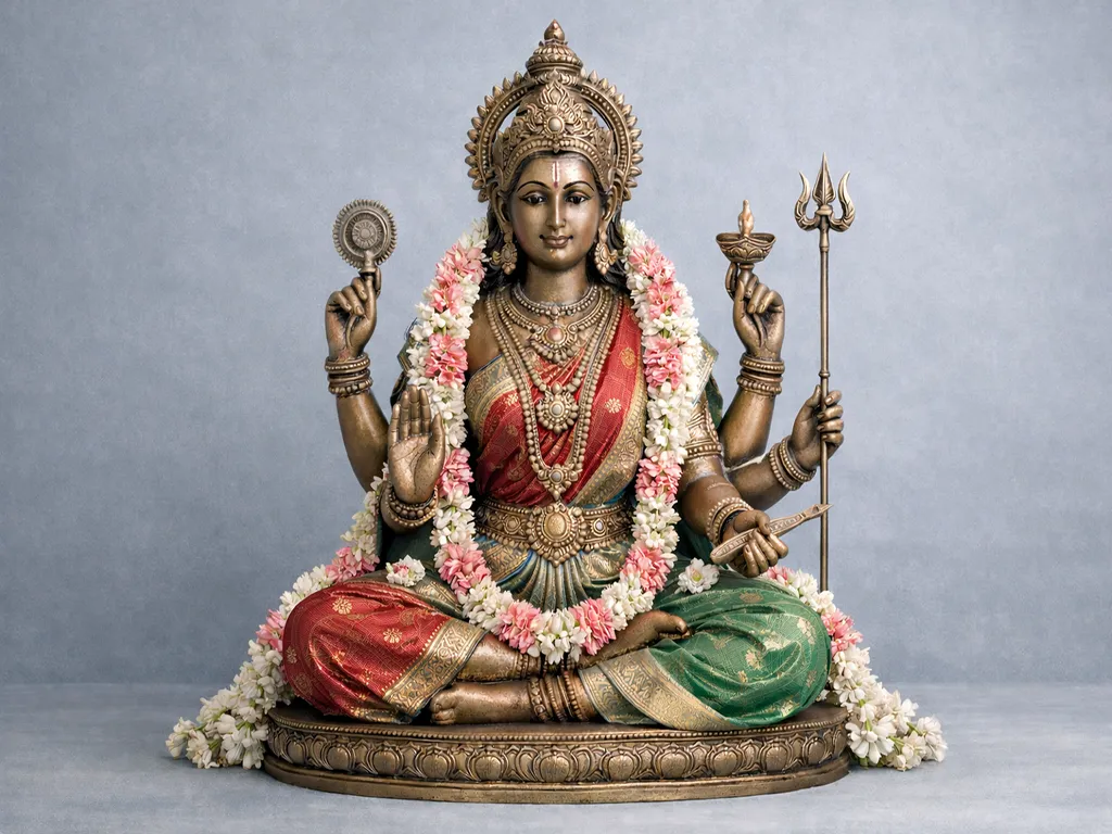 To pray to Sree Mookambika Devi, offer a white lotus, turmeric, or an open book. Sit in silence before you speak your request. Ask for clarity in purpose, discipline in learning, and the power to express only what serves good. She listens when your mind is calm, and she blesses not only what you think; but how you think it. Her presence clears confusion like light through still water.