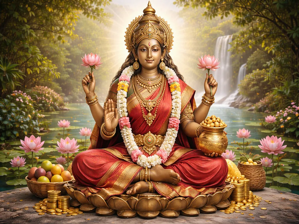 To pray to Dhanya Lakshmi, offer raw rice, green gram, or freshly harvested fruits. Speak your gratitude aloud; for what you’ve eaten, for who you’ve fed, for what grew under your care. She listens to those who understand the value of food beyond taste. Her presence ensures you don’t just have enough; but that you never forget what it means to be fed. She is with every hand that serves with love.