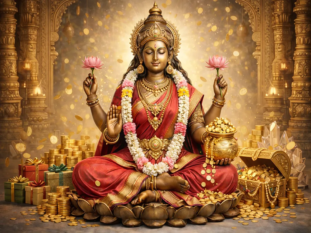To pray to Dhana Lakshmi, offer coins, turmeric, or jaggery. Stand before her not with hunger, but with humility. Ask for income that aligns with your dharma. Ask for the wisdom to manage what you are given. Her blessings are not instant gains; they are steady flows. Where there is gratitude, she stays. Where there is misuse, she leaves. She supports not what you chase, but what you build with care.